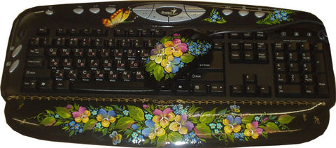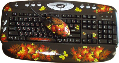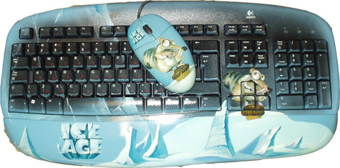 Contains Logitech mouse and Genius keyboard painted with the same picture.